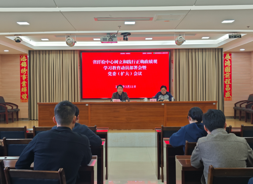 2026年3月11日下午,福建省纤检中心召开党委(扩大)会议,部署开展树立和践行正确政绩观学习教育,贯彻落实党中央、省委及省局党组相关决策部署,中心党委书记曾耀传作动员讲话。中心领导班子成员,中层管理人员,各党支部书记参加会议。
