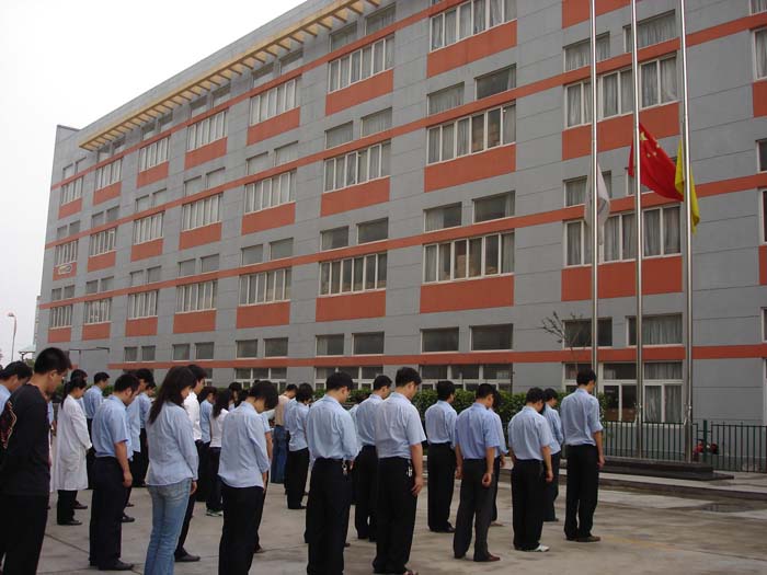 5月19日下午14时28,福建省纤维检验所全体员工为四川汶川大地震遇难同胞默哀3分钟